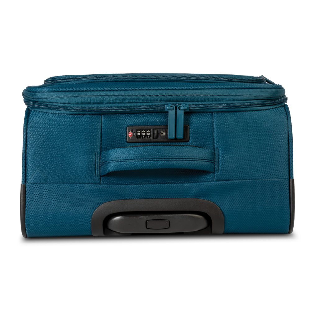 Integrovaný zámok TSA na hornej strane a hliníková výsuvná rukoväť na bezpečné a pohodlné cestovanie.