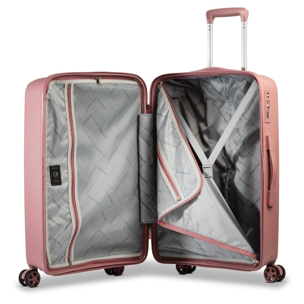 Kufrík v sebe spája moderný dizajn, praktické vnútorné usporiadanie a maximálny komfort pri manipulácii. Štyri otočné kolieska a teleskopická rukoväť zabezpečujú plynulý pohyb, zatiaľ čo zámok TSA chráni vaše veci počas cestovania.