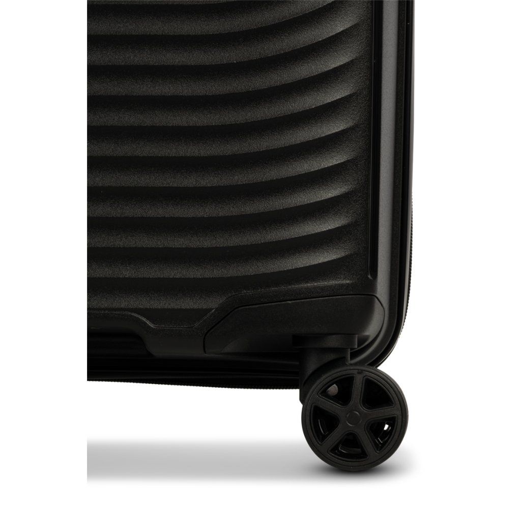 Pevná polypropylénová škrupina chráni obsah pred nárazmi, zatiaľ čo štyri otočné kolieska a teleskopická rukoväť zabezpečujú pohodlnú manipuláciu. Kufor je navrhnutý pre maximálnu praktickosť a bezpečnosť pri cestovaní.
