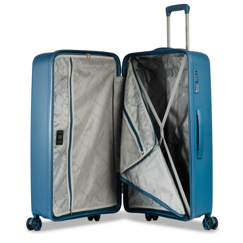 Kufre sú vyrobené z odolného polypropylénu, ktorý spoľahlivo chráni obsah pred nárazmi. Štyri otočné kolieska, teleskopická rukoväť a praktické vnútorné usporiadanie umožňujú pohodlné a bezproblémové cestovanie.