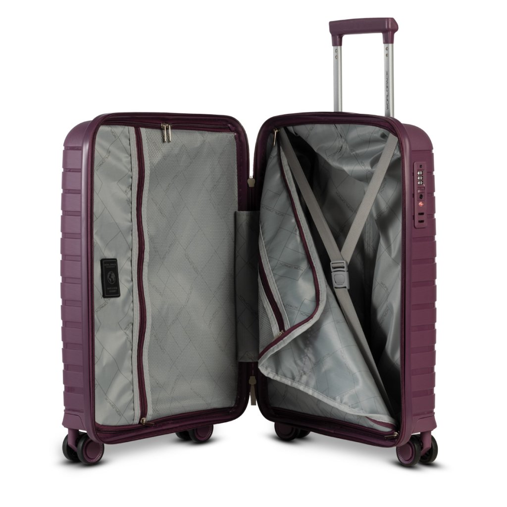 Za bezpečnosť svojich vecí ste zodpovední vy integrovaný zámok TSAktorá vám umožní odbaviť batožinu bez jej poškodenia - ideálne na cesty do USA. Vnútro kufra je prakticky štruktúrované - deliaca priečka s vreckom zo sieťoviny a upínacie popruhy pomáha udržiavať poriadok a stabilitu počas prepravy.