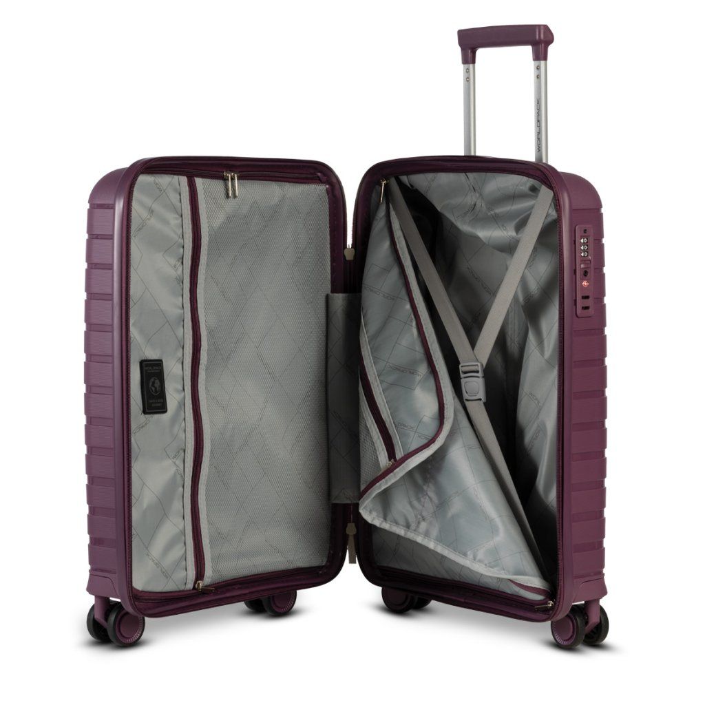 Všetky puzdrá sú vyrobené z vysokokvalitných materiálovpolypropylénktorý vyniká odolnosťou proti poškodeniu pri zachovaní nízkej hmotnosti. Vďakaintegrovaný zámok TSA môžete bezpečne cestovať so svojimi kuframi aj do krajín s vyššími bezpečnostnými požiadavkami, ako sú napríklad USA.