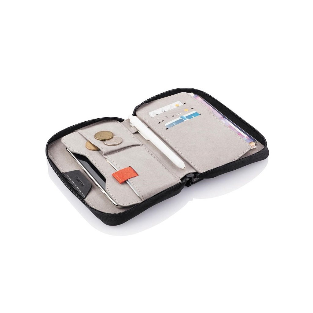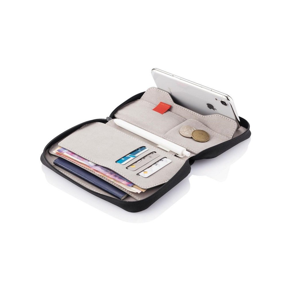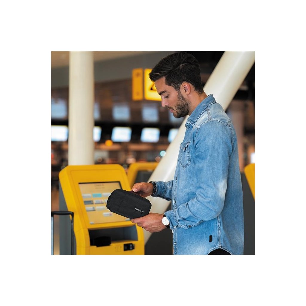 Praktické puzdro na cestovný pas, palubné lístky, kreditné karty a iné cennosti. Má ochranu RFID, ktorá zabraňuje krádeži identity a elektronickým vreckovým krádežiam.
