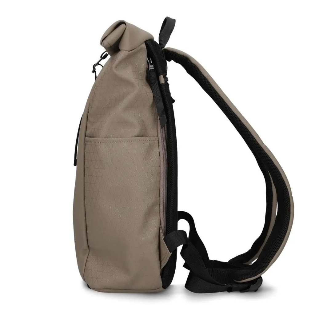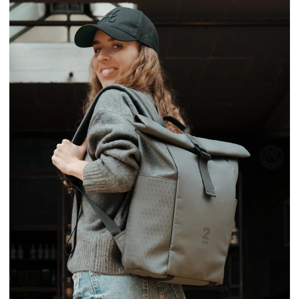 Zadná časť batohu je zmäkla a zároveň stvrdlaaby batoh držal svoj tvar aj pri plnom zaťažení. Pohodlie pri nosení zabezpečuje nastaviteľné a polstrované ramenné popruhy a vďaka pevnej hornej rukoväti sa pohodlne nosí v ruke. Vrchnú časť batohu možno upevniť pomocou dvoch magnetov ukrytých v materiáli, zrolovať a zaistiť popruhom s kovovou prackou. Batoh je tiež ľahko prístupný praktický bočný zips.